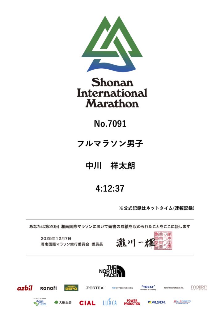 大磯町からスタートして、平塚、茅ヶ崎、藤沢、江ノ島(藤沢)を折り返して大磯町まで42.195kmを走るフルマラソンです。