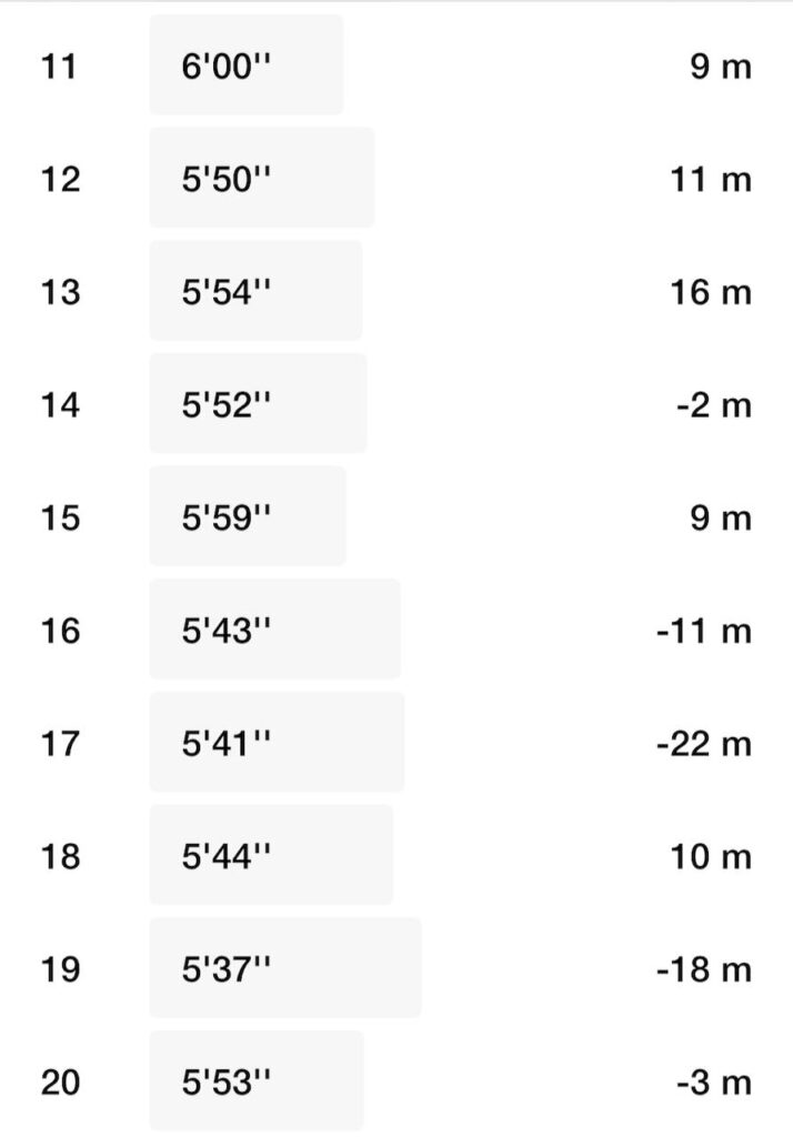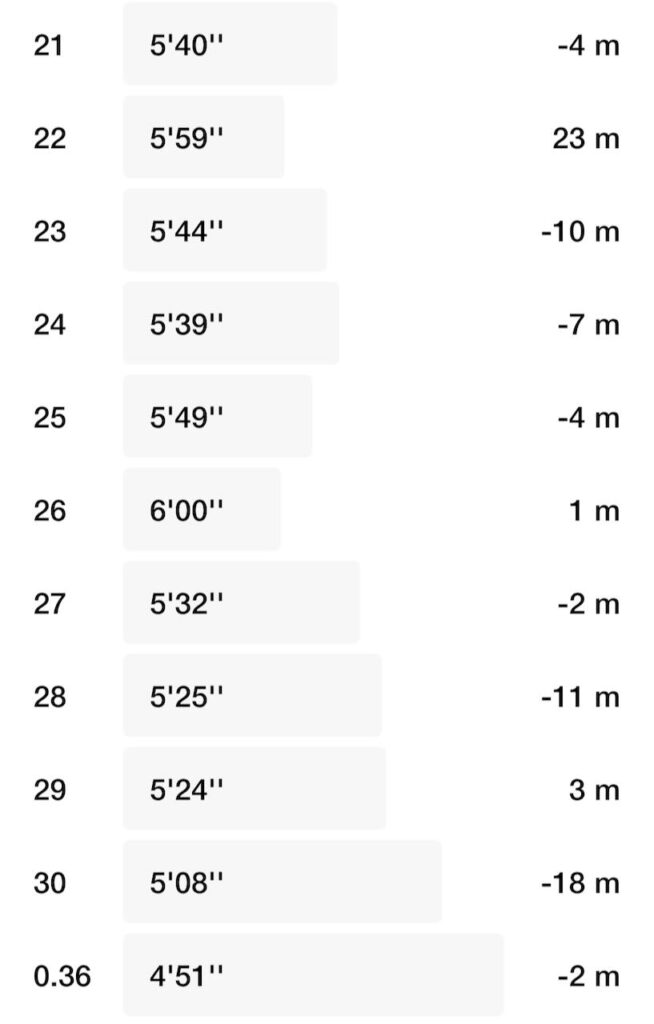 私の走り出しは普段の練習でも最初の2kmまではいつも絶不調。キロ6分15秒くらいかかってしまいます。いつも、体が重いのと脚が動かない。